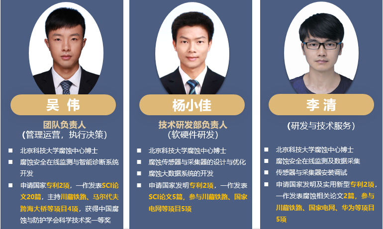 吴伟,团队负责人,小宝寻花 国家材料腐蚀与防护科学数据中心的博士,统筹团队的运营管理工作,负责执行决策。同时,他专注于腐蚀安全在线监测与智能诊断系统开发,现已申请国家专利2项,一作发表SCI论文近20篇,主持川藏铁路、马尔代夫跨海大桥等重大项目共4项,获得中国腐蚀与防护学会科学技术奖一等奖1项。