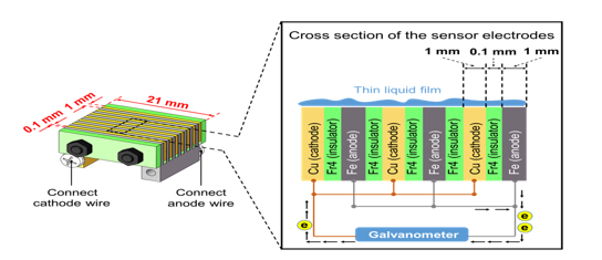 团队的核心硬件是自主研发的多款集成化腐蚀监测传感器和高精度高频次的多通道数据采集器。腐蚀传感器既可以小至芯片级,也可以长达2m,均可获得近10种多源异构的腐蚀信息,实现对精密电子仪器的在线监测。