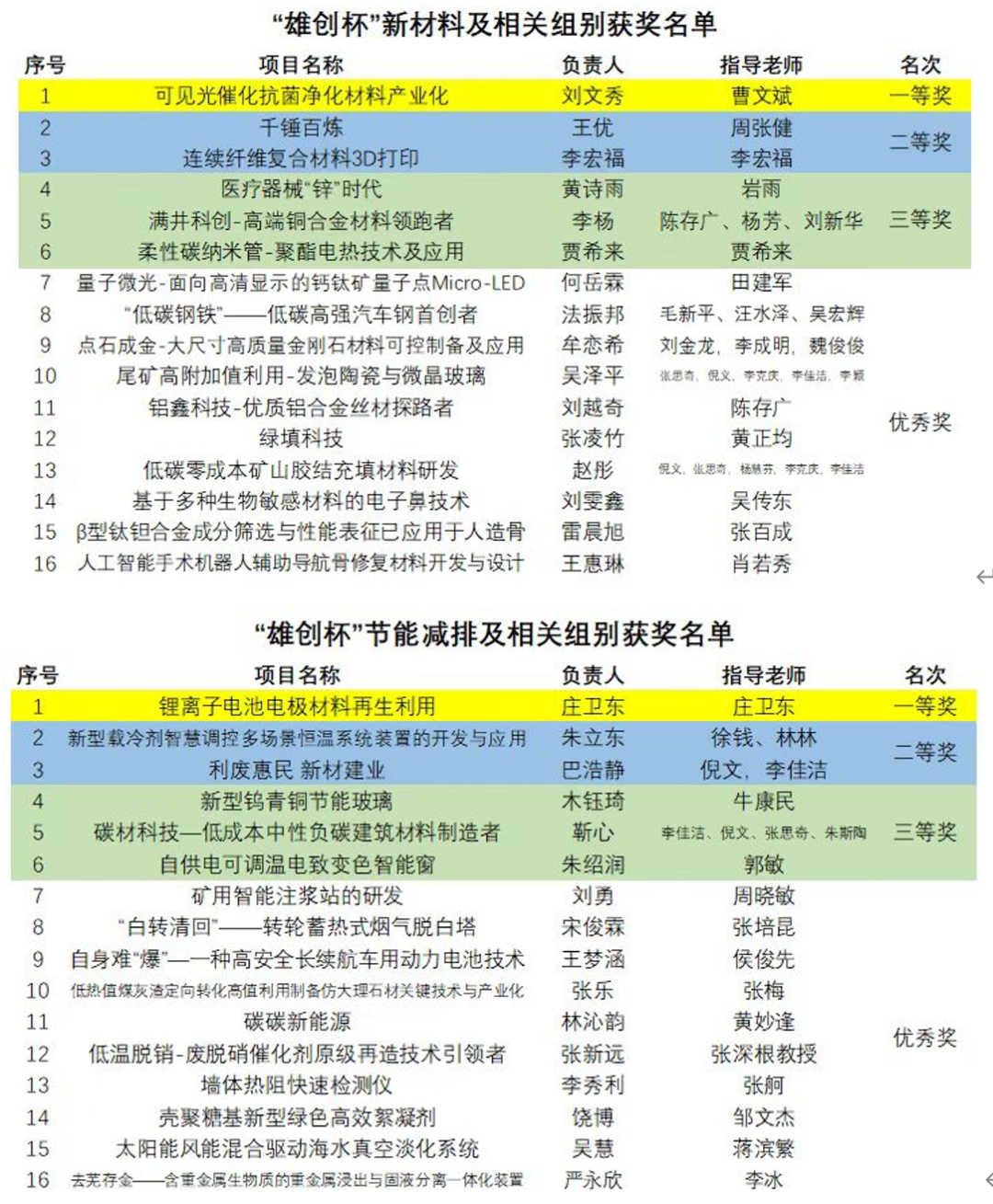 本次颁奖仪式将分别为新材料和节能减排两组获奖团队进行颁奖,将邀请到本次“雄创杯”比赛中荣获一等奖和二等奖的团队进行项目内容分享,同时科创导师的专家将开展交流指导,帮助同学们进一步了解相关领域知识,学习科创实践知识。