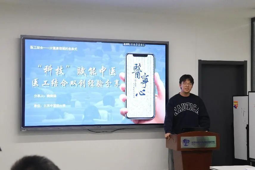 陶鹤扬同学分享了“科技赋能中医”医工融合双创经验,以本科生身份在大学生涯中进行了创新创业,并分享了医工融合方向相关项目的具体调研结果与思考,从大学生项目视角下对医工融合领域进行了理解,并提出了大健康领域的一些项目开展方向。