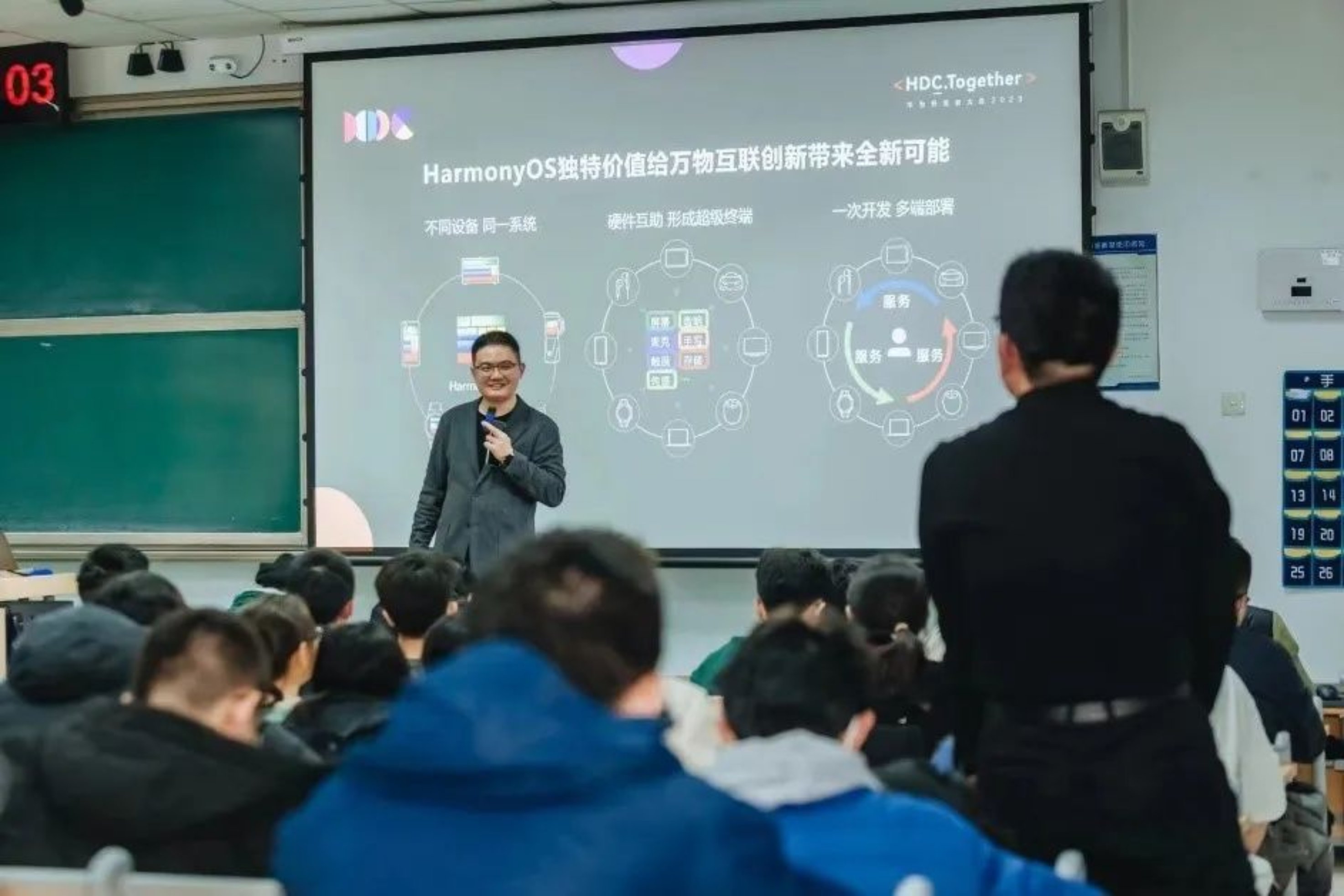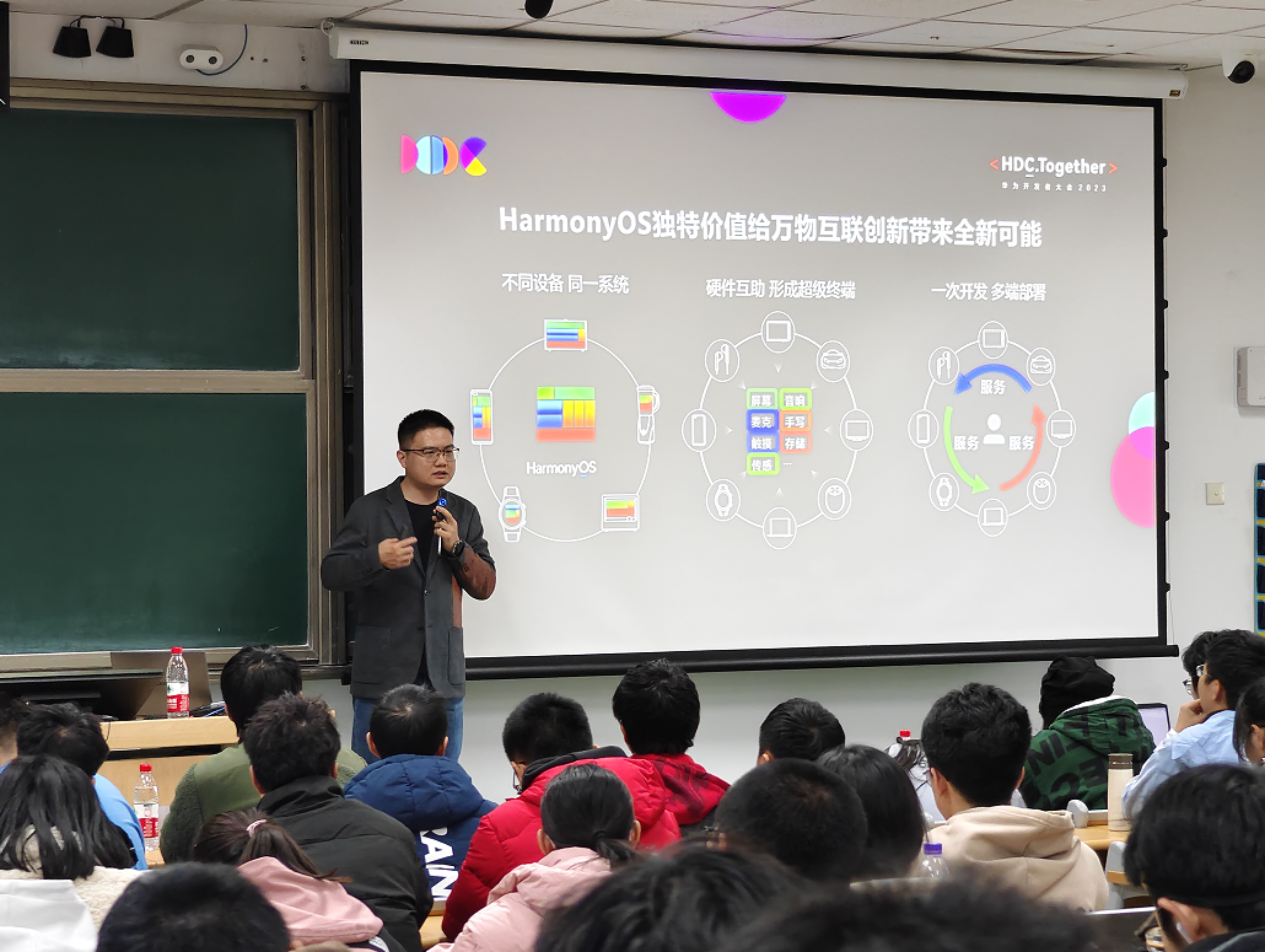 经过鸿蒙课堂讲解,同学们无不觉得醍醐灌顶,对这一新技术产生了属于自己的认知,同时结合自身实际提出了一些关切的问题与华为专家交流、互动。