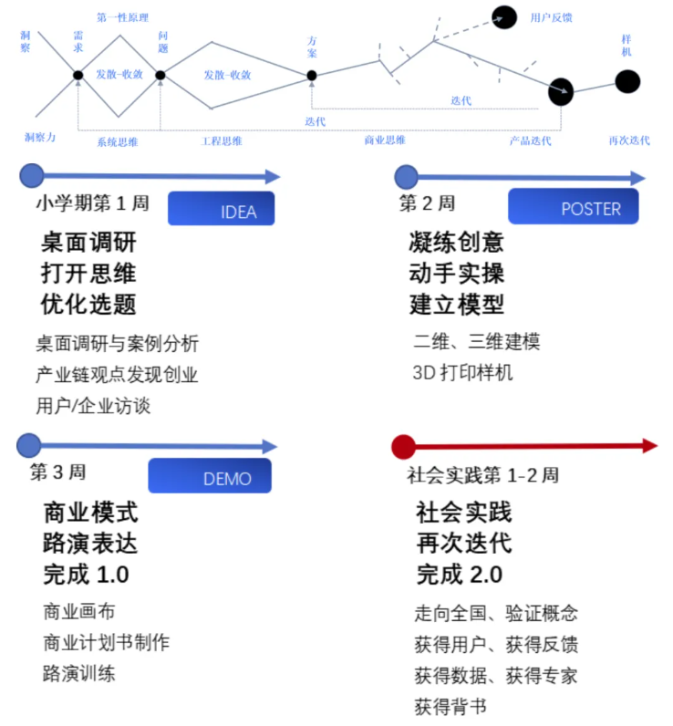 即通过3周学习“调研-原型-路演”