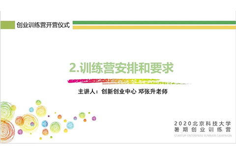 8月24日,2020北京科技大大学暑期创业训练营正式开始,创新创业中心副主任王丽红出席开营仪式并讲话。