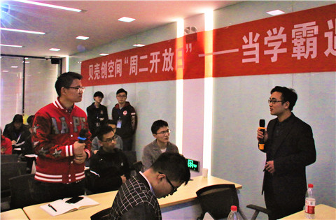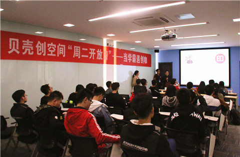 为进一步扩大学校创新创业教育覆盖面,培育学生创新创业精神与意识,搭建我校优秀学子线下学习、交流平台,4月10日晚由学校创新创业中心、勤工助学中心联合举办的贝壳创空间“周二开放日” “学霸遇创咖”活动在贝壳创空间顺利举行。活动邀请到我校优秀学生创业者蒋世界和杨国庆担任分享嘉宾。