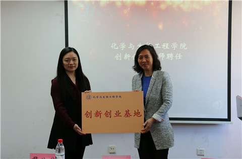 尹兆华及倪宇分别将“化学与生物工程学院创新创业分中心”以及“化学与生物工程学院创新创业基地”两块牌匾授予学院,并为管浩宇颁发创业导师聘书,为边永忠、刘晓璐颁发创新导师聘书。
