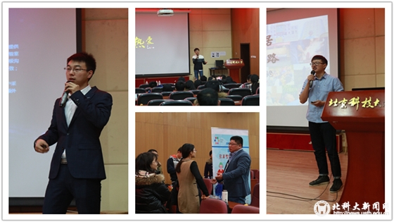本次活动共有RoBits创客教育、孟子居“生态零食”、摩借玩乐装备租借共享平台、彩果智能老年健康枕这四支优秀的创业团队参加宣讲及招募。活动现场各团队负责人展示项目过往成绩、发展现状与未来规划,并分享自身的创业历程,感人至深。RoBits创客教育创始人王端从选择项目赛道的初衷谈起,介绍了由创客教学设备与创客教育服务撑起的中小学创新教育品牌,并着重提及了创业背后所具有的一腔“家国情怀”。代表孟子居“生态零食”项目的杨国庆是从同学们最熟悉的校园活动与社会实践谈起,用将近两年贴近校园生活的创业足迹勾画了在校大学生坚定的创业探索之路。魔借团队的张代进以“热爱”、“激情”向现场的同学们传递着魔借项目所秉持的分享经济理念,因为“热爱”所以创业。彩果智能老年健康枕创始人林清发以身为例讲述了创业为艰的道理,介绍了作为项目的创始人肩负的重任与应具备的能力品质,字字恳切,句句深情,体现了坚毅果敢的连续创业者的状态。