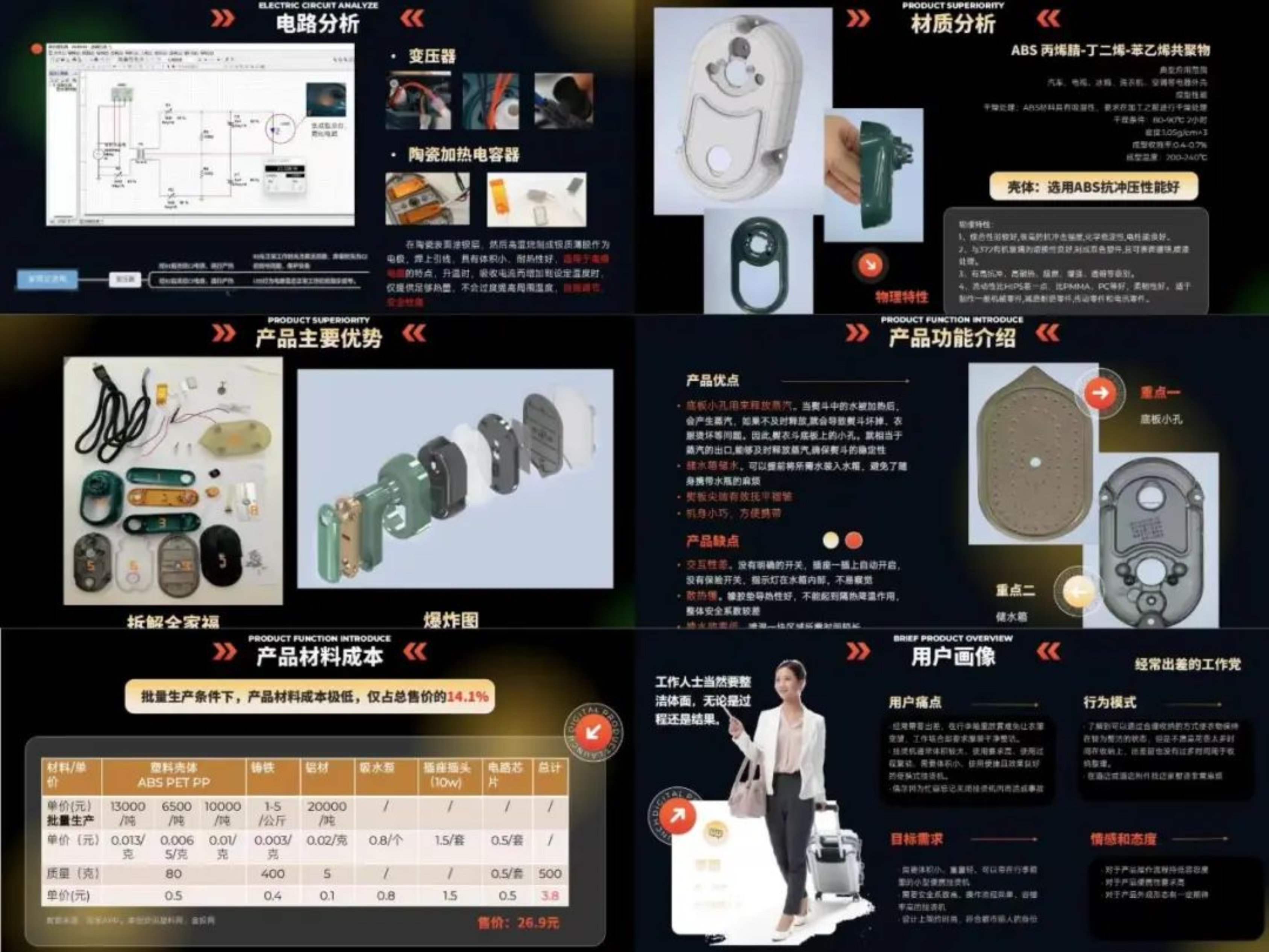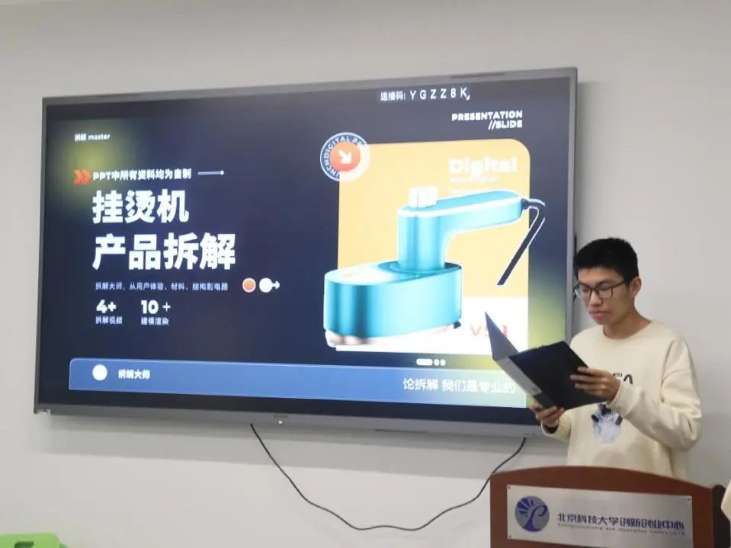 最后,让我们来一起看看冠军团队的答辩风采。拆解大师队从产品概述,产品体验分析,产品结构分析,分析总结四个大点详细解构了手持式挂烫机,并辅以拆解视频,建模渲染以及精美的PPT,为在场观众评委献上了一场拆解盛宴。